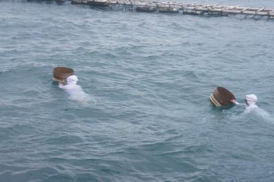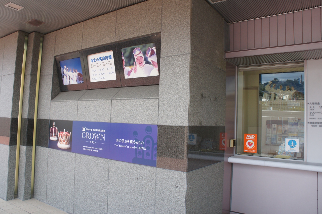 真珠島までは橋があり徒歩で洛に行けます。真珠館の前には御木本幸吉の銅像が立っています。真珠館は結構新しくて展示にも工夫がなされていて、説明が詳しくわかりやすいです。館内を40分くらいで見終わったら、真珠館の向かい側にある海の方へ行くと海女さんの素潜り実演を見ることができます。普通、2月は海女さんは素潜り漁はしないですが、真珠島では特別に素潜りをしてくれます。当日は、二人の海女さんが実演してくれました。磯笛を吹きながら素潜りする海女さんを見ていると、こんなに寒いのに大丈夫だろうかと心配してしまいます。15分くらいの素潜りを見学した後は、真珠館の裏手にある御木本幸吉記念館を訪れてください。入館は無料です。御木本幸吉の生涯を写真や生活用具と共に実際に生活していた部屋も再現して展示してあります。3つの見学ポイントを回れば真珠島観光代金はコスパ高いでしょう。