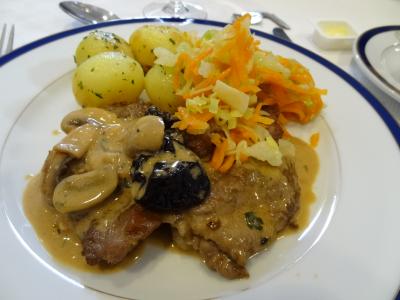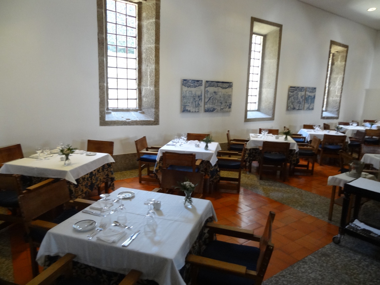 宿泊ではなくて、昼食をとるためにこのホテルのレストランを利用しました。旧修道院を改装したホテルで、内装や調度品はクラシック感はあるものの、豪華さを感じさせるものがります。特に、レストラン内の窓際の壁にはやや色は褪せていますが、かなり古いアズレージョ(彩色タイル)が飾られています。スタッフさんの接客はとてもよく、気持ちよく食事ができます。肉とジャガイモの料理は素材の良さを壊さずに上手に調理されていて、最高の味を醸し出しています。焼きプリンは少し甘めですが、香り・味がとても良いです。コーヒーはデミタスカップで出され、コク・香りも高級感が出ています。食事後、通路から見えた中庭も素晴らしい造りになっていて、修道院の外壁には何体もの彫像があり、中世の時代にタイムスリップしたような気分に浸れます。