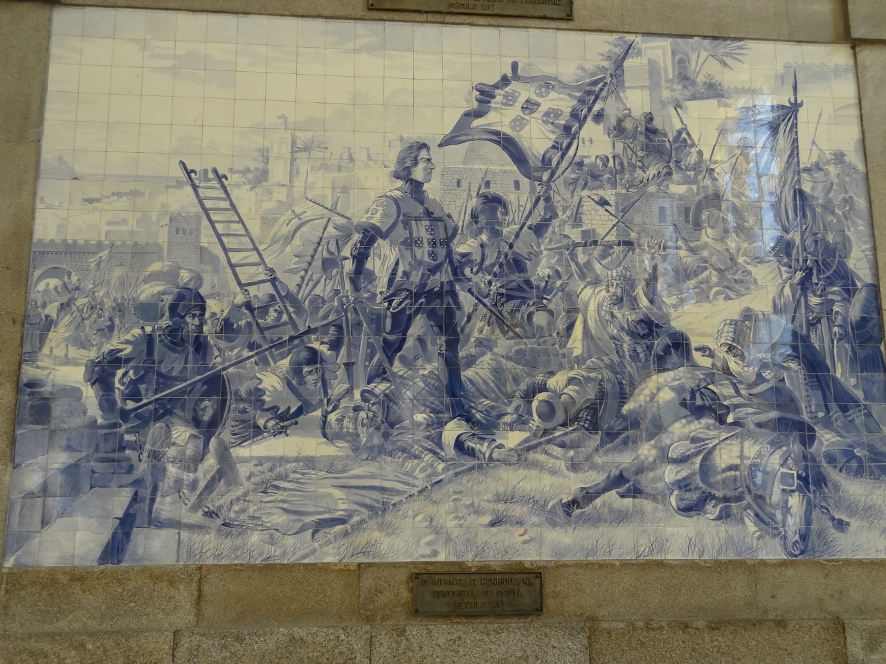 ポルト市内にある教会や建物の壁にアズレージョ(彩色タイル)を見かけますが、これほどスケールがあり見事なアズレージョは見たことはありません。駅舎の内側の壁一面に彩色タイルが所狭しと埋め込まれています。国王謁見の様子やエンリケ航海王子の素晴らしい描写には思わず息を飲んでしまいます。スリなどがよくあるようで、警官が数名立って見張っています。くれぐれも、彩色タイルに見とれてしまって、油断しないようにしてください。せっかく、駅に来たのですから、ホームに停車している電車を撮影してみるのもいいと思います。ホームの横には有料トイレもあります。