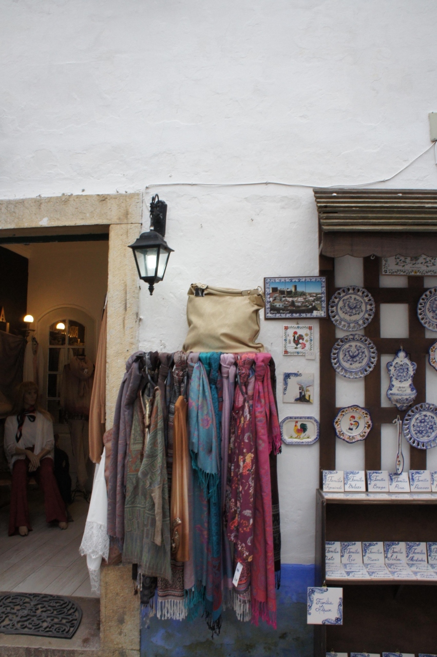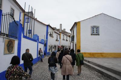 「谷間の真珠」と呼ばれるオビドスの村は白い壁の建物が通路の両側に建ち並び、とてもかわいい景観となっています。城壁がこの村を囲んでいて、村の通路からも屋根の上の方に城壁を見ることができます。村の建物はお土産店が多くてショッピングが楽しめます。私はFADOのCDをお土産に買いました。通路を歩いて行くと、白い教会が右側に見えます。教会の前では正装した楽団員がポルトガルの音楽を演奏していて、とてもロマンチックな気分に浸ることができました。