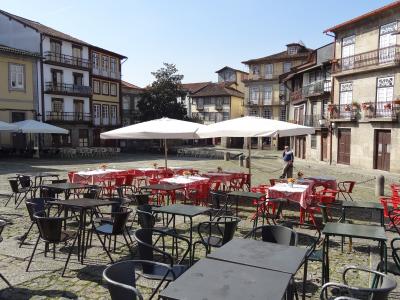 この歴史地区はポルトガル王国発祥の地と言われています。初代国王アフォンソ一世がギマランイス城で生まれてポルトガル王国となりました。このお城は四角く切り出した石だけを積み重ねてできています。正面からも裏側からも見応え十分です。裏側にある散策路を下っていくと立派な国王の像が立っています。さらにずっと進むと煙突が何本もある中世風の建物や古い教会も建っています。教会の前にある広場では飲食ができるように椅子やテーブルもあります。通路をさらに進むと、急に視界が広がり、大通りとこの通りに囲まれた細長い広場が見えて奧に二本の尖塔をもつ荘厳な教会があります。教会の前には彫像が数体あり美術館前の広場にいるような気分に浸れます。この大通りには人気がある店が多くあって、土産店でのショッピングや喫茶店で休憩するのにも最適と言えるでしょう。