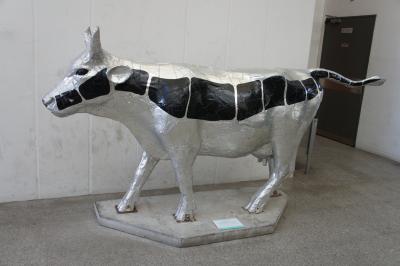 アヴェイロ駅は新駅と旧駅が並んで建っています。旧駅の彩色タイルは見事です。道路側から見えて、旧駅舎の前には広場があり、思い思いに写真撮影ができます。タイルが作られた当時の農漁村の暮らしや人々の服装などがリアルに描かれています。隣の新駅に入ると、白い雄牛のマスコットが何気なく置かれています。ホームにも自由に入ることができ、ホームから見える旧駅の駅舎も垣間見ることができます。旧駅の前の道路にはミニSL型の二両編成のポットトラムが停車していて、とても可愛らしく見えます。