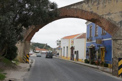 オビドスの村の入り口近くにある駐車場からもよく見えます。間近に見るには、道路を横切って舗装していない駐車場に入ります。くれぐれも往来する車には気を付けることが必要です。オビドスの村の方向へ続く水道橋はずっと奥から、横断した道路の上を通り城の方向へまっすぐ伸びています。結構保存状態がよくて、橋のラインがスッキリ見えて、今でも水が流れているかのような錯覚さえします。運がよければ、道路の水道橋のトンネルを通る観光馬車も撮影できます。
