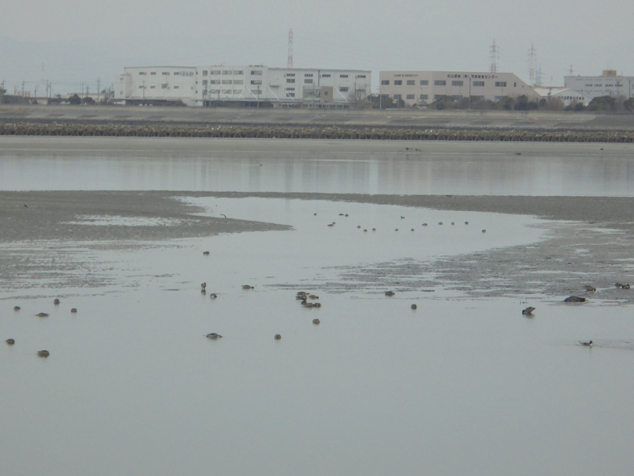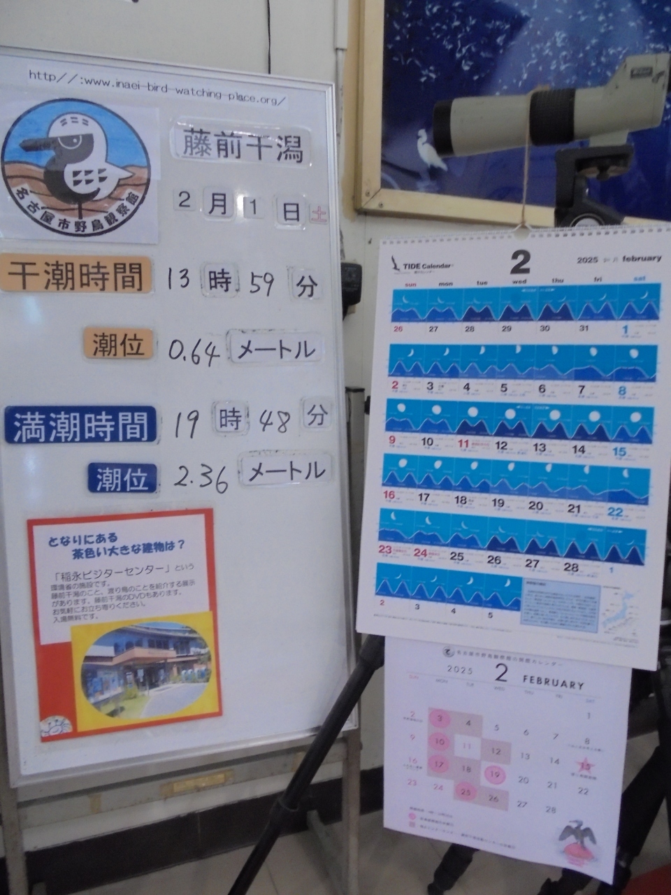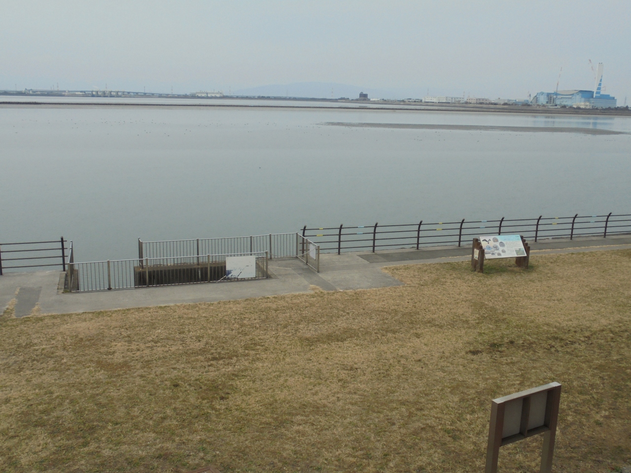 干潮になる時間をネットで調べてから藤前干潟へ。無料の駐車場があって便利です。松林の公園内にビジターセンターと野鳥観察館があって、二つの館内は必見の価値あり。特に、野鳥観察館の一階・二階には固定式の望遠鏡(無料)で干潟の鳥を観察できます。松林には散策路が整備されていて、休憩所やトイレも完備されています。塩が引いた干潟には、初心者が見ても五種類ほどのカモが見られます。メスよりもオスのほうが羽の色がきれい。餌を食べている姿もかわいいです。