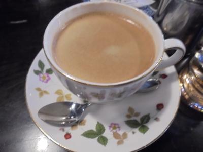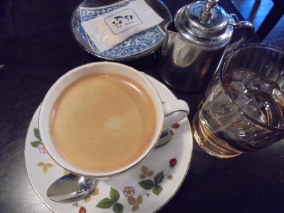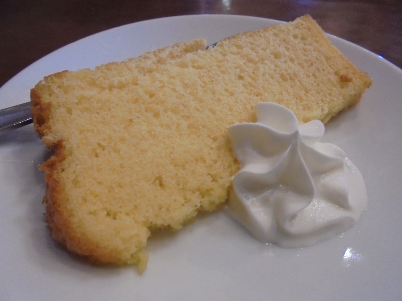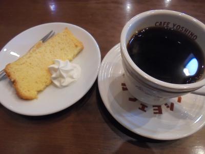 駐車場が広く、店前にはミニ庭もあります。木造の店内はやや暗めでアンティークな雰囲気、木造なので木の温もりが感じられます。BGMはジャズで、ゆったりと落ち着けます。土曜日の昼下がりなので、席はほぼいっぱい。人気があるカフェのようだ。モーニング・ランチメニューも充実。ブレンドコーヒーを注文。アフタヌーンサービスでシフォンケーキ無料なのも嬉しいサービス。飲みやすく、コク・味の深みがあるコーヒー。しっとり感・甘めのケーキも美味しくいただけました。
