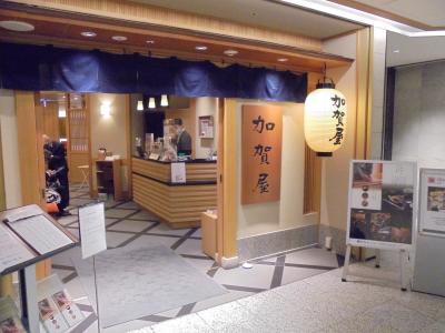 JRセントラルタワーズ13階にある、和倉温泉加賀屋直営の会席料理店です。洗練された店内には、個室・テーブル席、一部カウンター席があります。オーダーしたのは加賀遊膳。お造りと天ぷらは盛り付けや彩りが素晴らしく、一つ一つに職人のきめ細やかなこだわりが感じられます。器の美しさと盛り付けの繊細さも含めて、料理のレベルが高いです。治部煮などの加賀料理を堪能できて、至福のひとときを過ごせました。