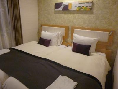 部屋はベッド2台でいっぱいいっぱいの狭いお部屋でしたけれど、新しいホテルらしく清潔です。