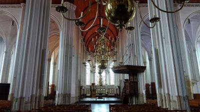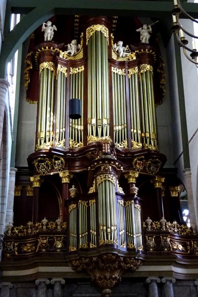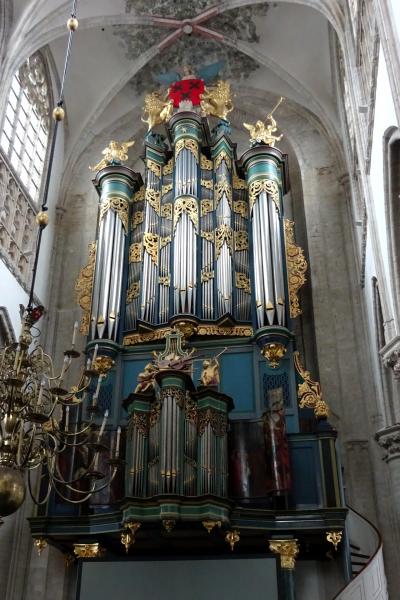 創建は1278年ですが、1552年の火災で焼失し1593年の再建で現在の姿になりました。1573年この教会がプロテスタントになった時、祭壇のほとんどは取り除かれましたが、ステンドグラスは残されました。カトリック時代のステンドグラスが保存されたオランダ唯一の教会のようで、20世紀の作品も含め70枚のステンドグラスが飾られています。パイプオルガンも見事です。