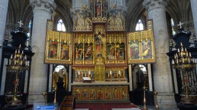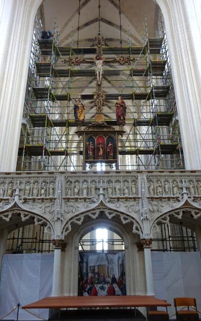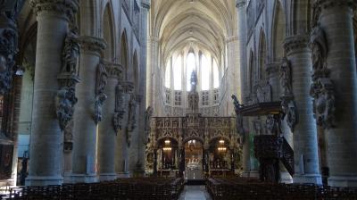1488-90年に製作された後期ゴシックの内陣仕切りは、ベルギーでは最古のもので、内陣仕切りの真上には等身大のキリスト磔刑像がありました。