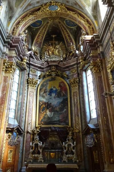 バロックの主祭壇の両側に2基づつ副祭壇があり、なかなか見栄えのする内陣でした。その横にあった銀の祭壇は、特別な催しの時に主祭壇の前に設置されるという、この教会のお宝のようです。