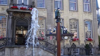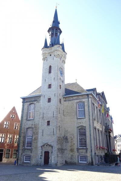 市街の中心、フローテ・マルクト広場に建っています。この建物は1367年に建てられた織物会館が、1418年から市庁舎として使われていて、現在の市庁舎は1740年にブラバントロココ様式で建てかえられたものです。