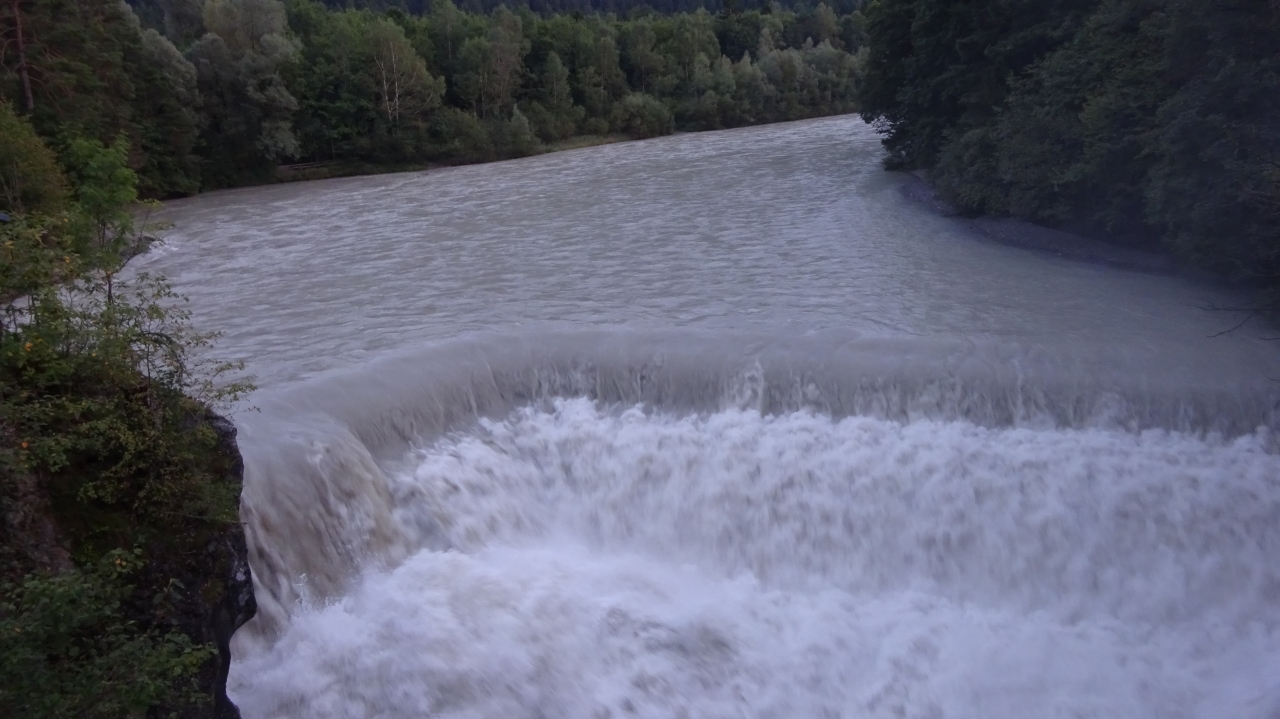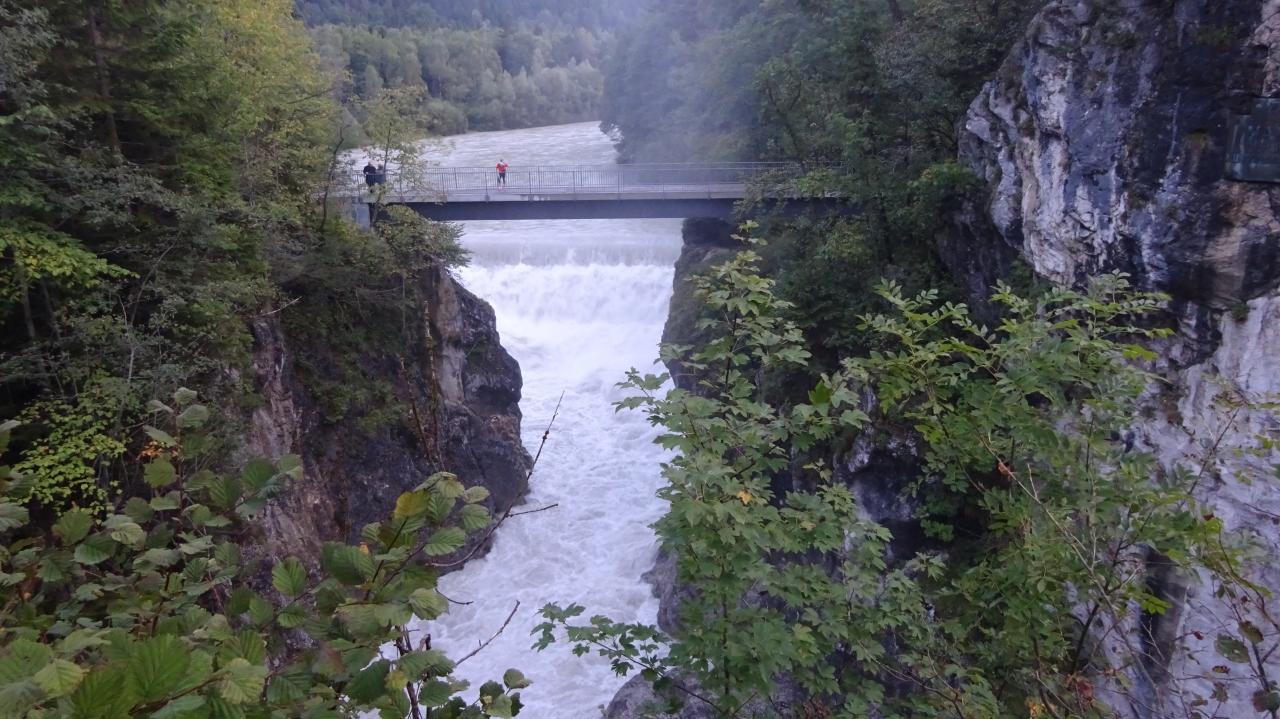 レヒ川の橋からチロラー通りを約1kmほど南にある滝です。滝の高さは12mで、そんなに大きな規模のものではありませんが、急流を見下ろすと結構迫力を感じました。周りの自然や景観も心地よいものでした。滝の横に橋がかかっており、対岸の岩山にはバイエルン王マクシミリアン2世の像があります。