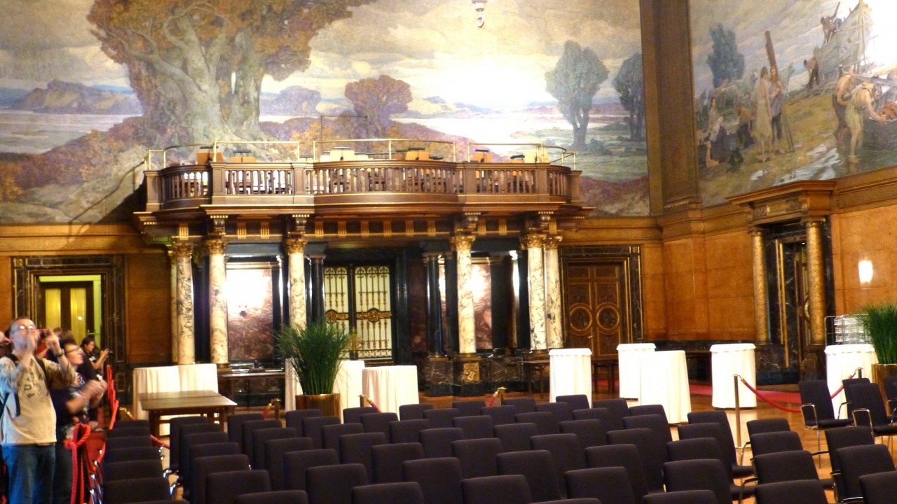 外部だけの見学で終わらせるのはもったいないです。ガイドツアーで市庁舎議事堂内部を見学できます。会議の間、皇帝の間、市民の間、宴会の間など豪華で重厚なたくさんの部屋がありました。
