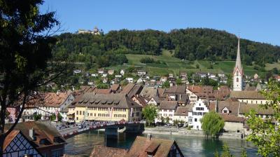 ライン河畔の丘Burgの上に立つ教会です。聖ヨハネ教会自体は質素な小さい教会ですが、この丘の北側斜面が魅力的。ここからはライン川と旧市街と山上の城が3点セットで見られるシュタイン・アム・ラインの絶好の展望スポットです。