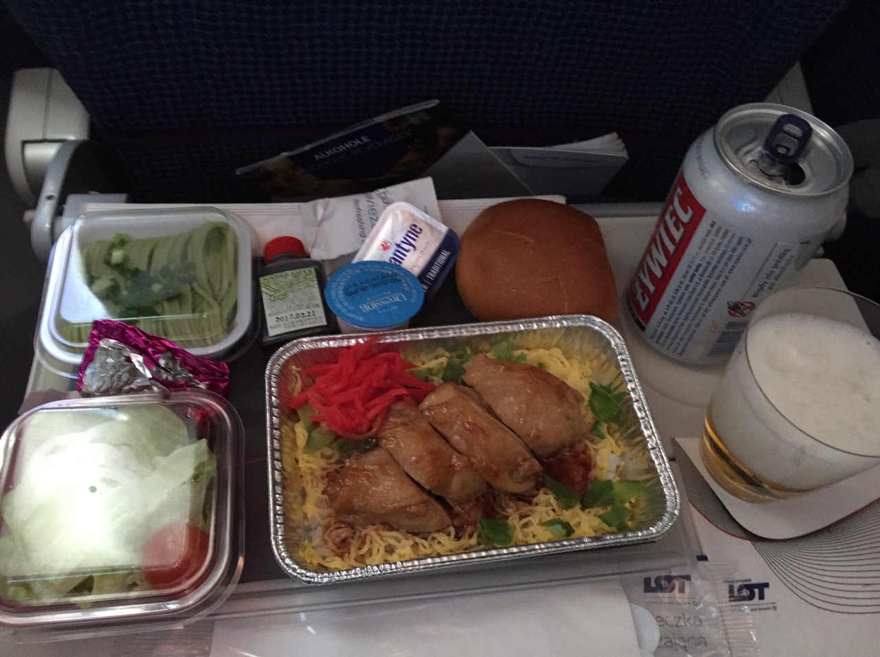 いざ乗ってみるとなかなか快適に過ごせました。食事も美味しく頂けましたし、ポーランドのビールも頂きました。早いモノ勝ちフリーカップ麺の何故か味の素がポーランドで販売している「親方」ラーメン(笑)も頂きました。