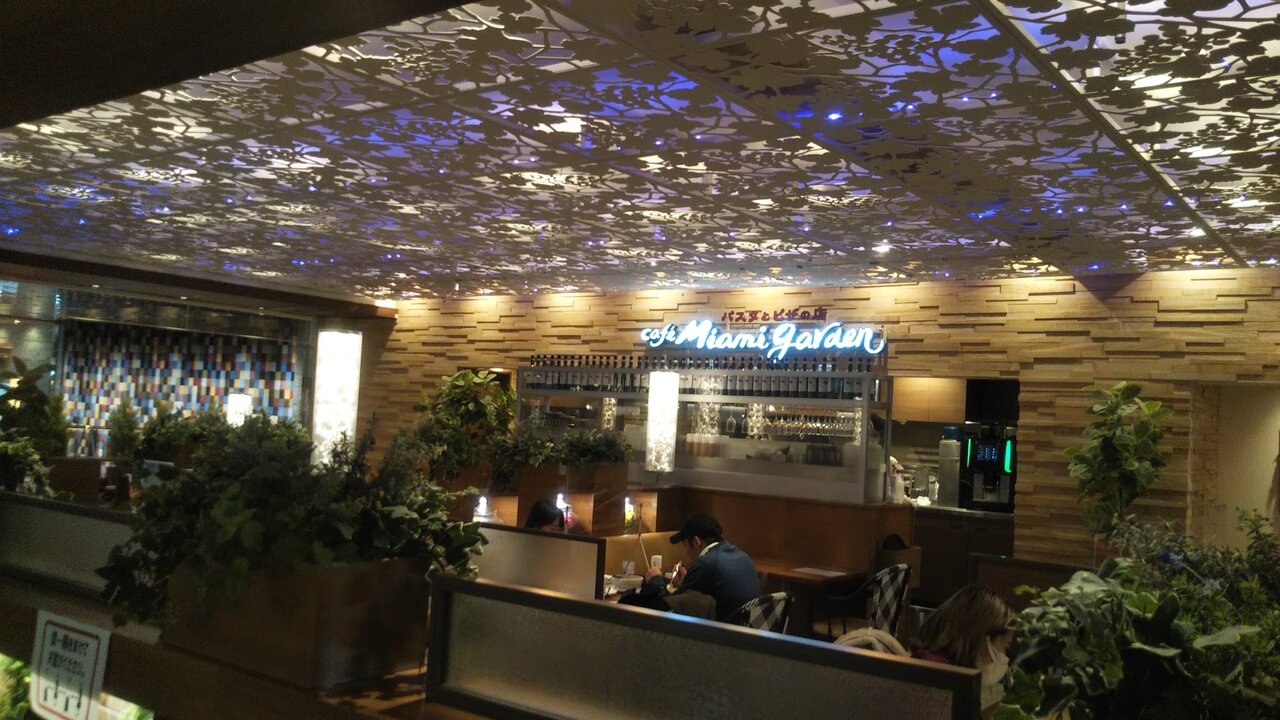マイアミリゾートをモチーフにした居心地のいい空間で、ランチ、ディナーはもちろん、午後のひとときもゆっくり過ごせます。