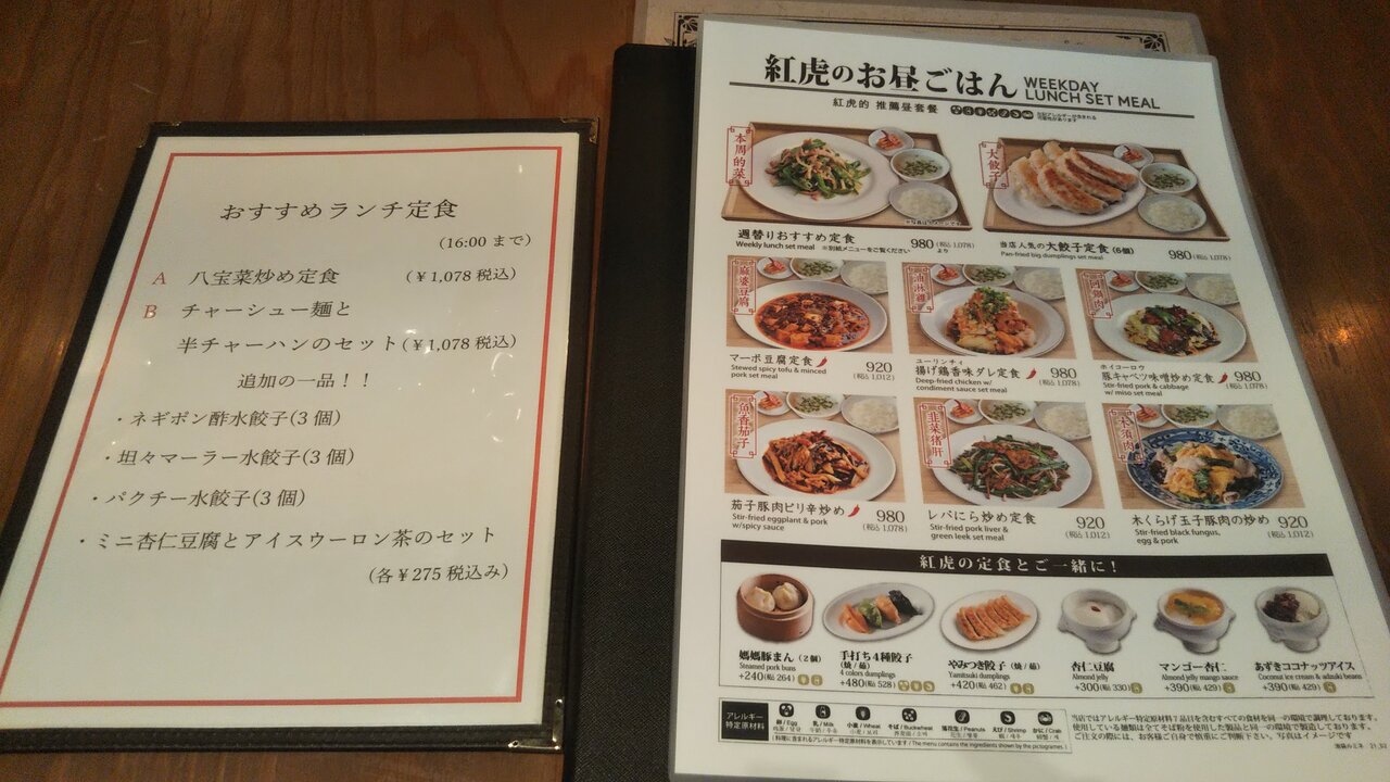 大餃子、麻婆豆腐、担担麺など紅虎の味を楽しんで下さい。
