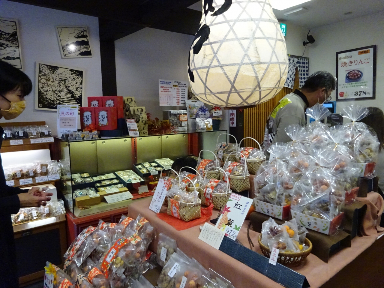 コロナ禍で試食は無理だと思っていましたが、1つ1つ個別包装のおまめさんが置いてあって流石です。