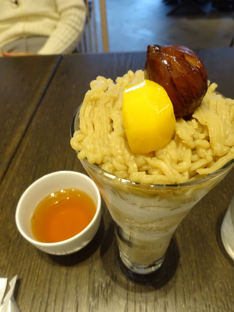 季節の旬物を使ったスイーツ、栗のパフェを思わずいただきました。