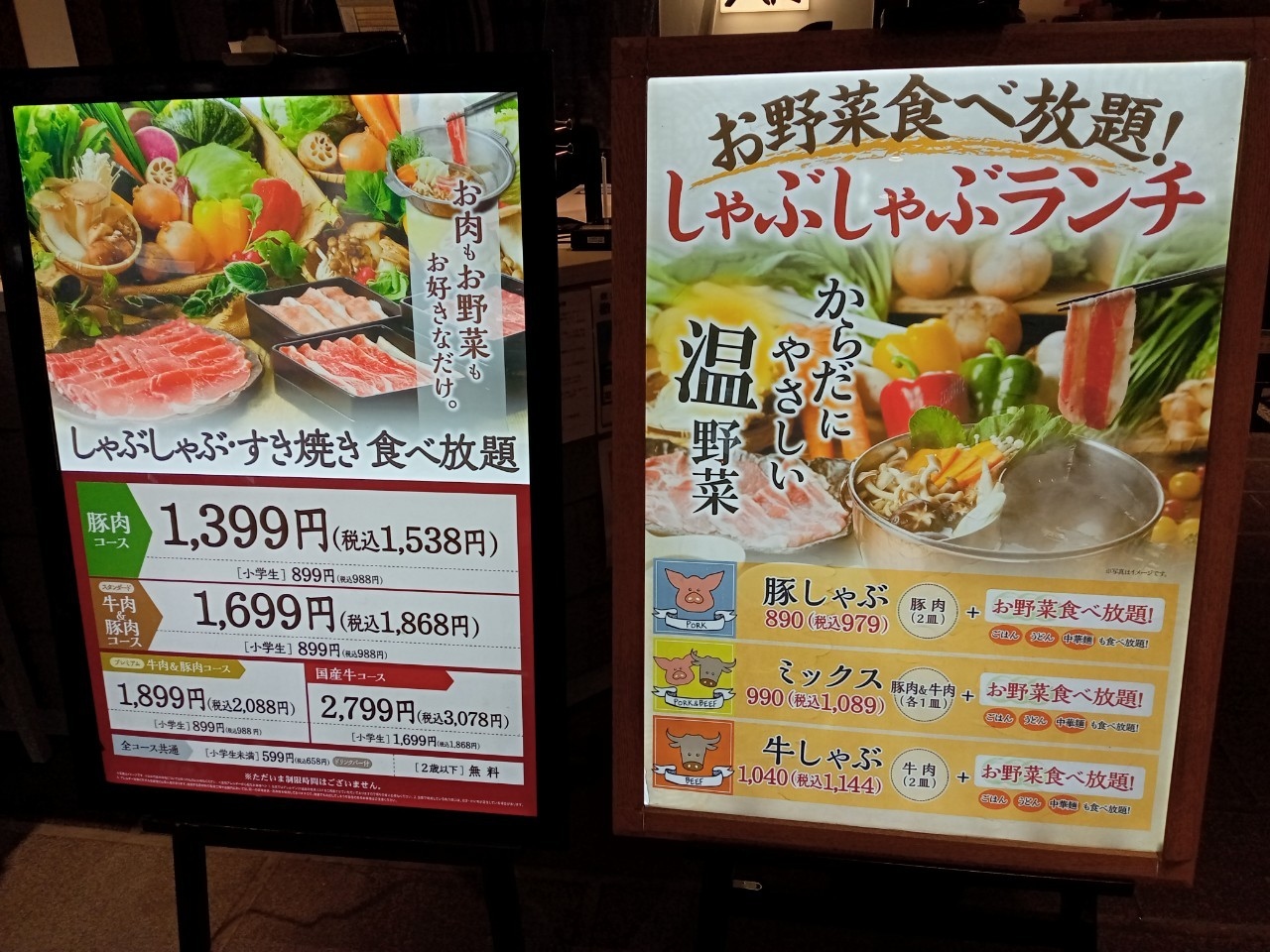 平日はお肉食べ放題のコースから野菜食べ放題のランチまで色々選べます。