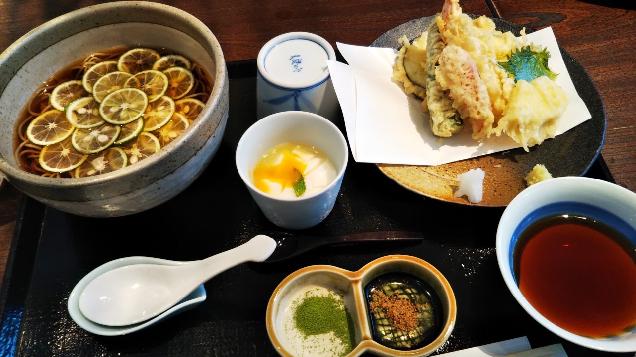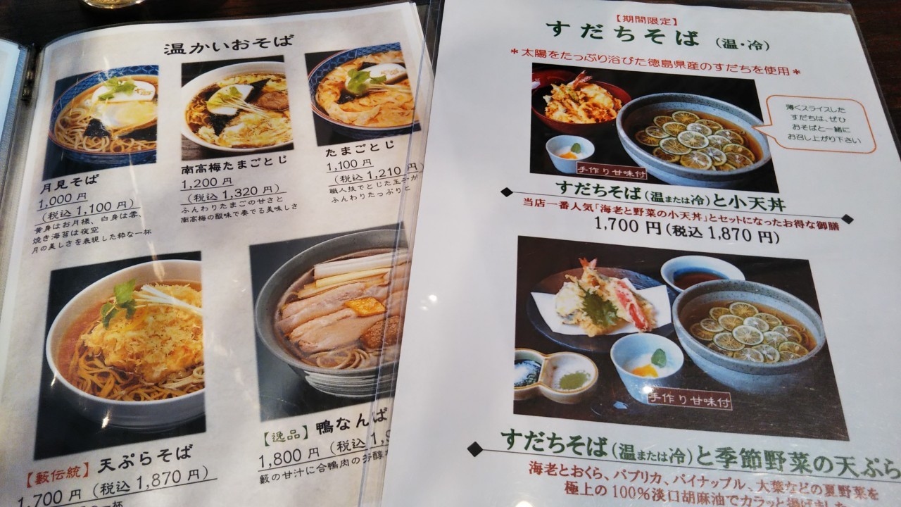 季節のメニューですだちそばを注文しました。