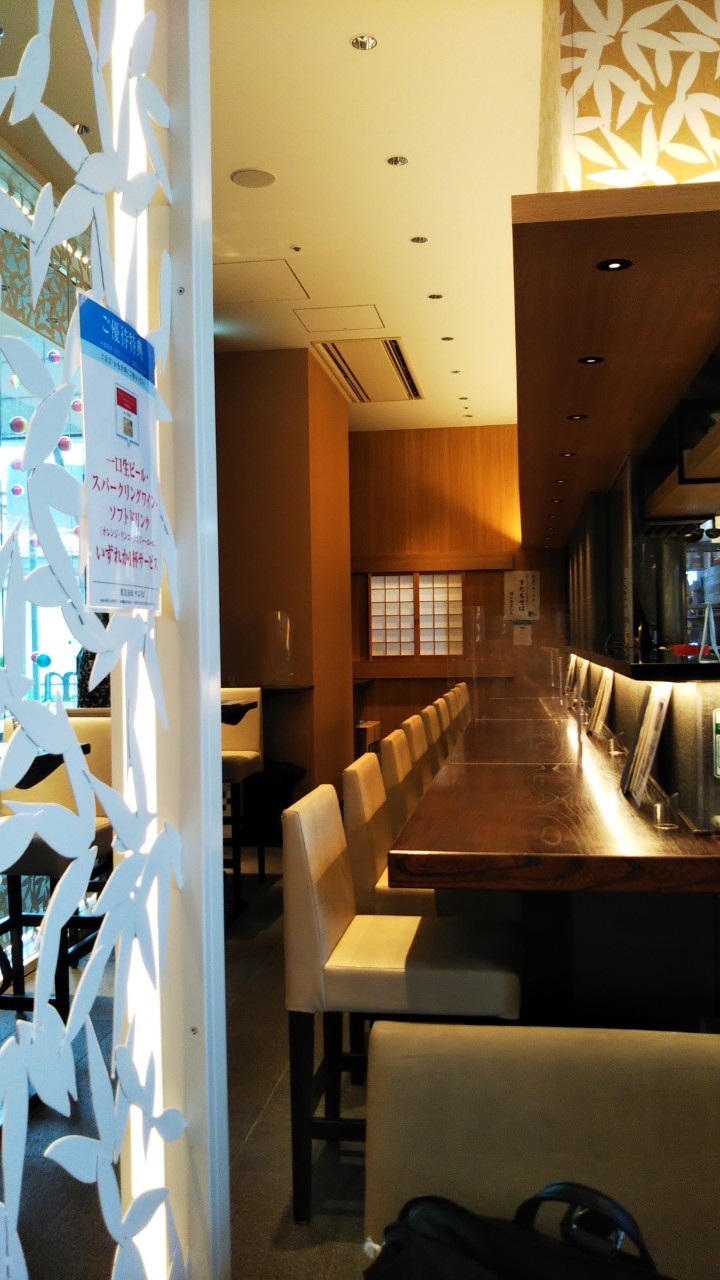 スッキリしたレイアウトで、感染対策のパーテーション完備でした。