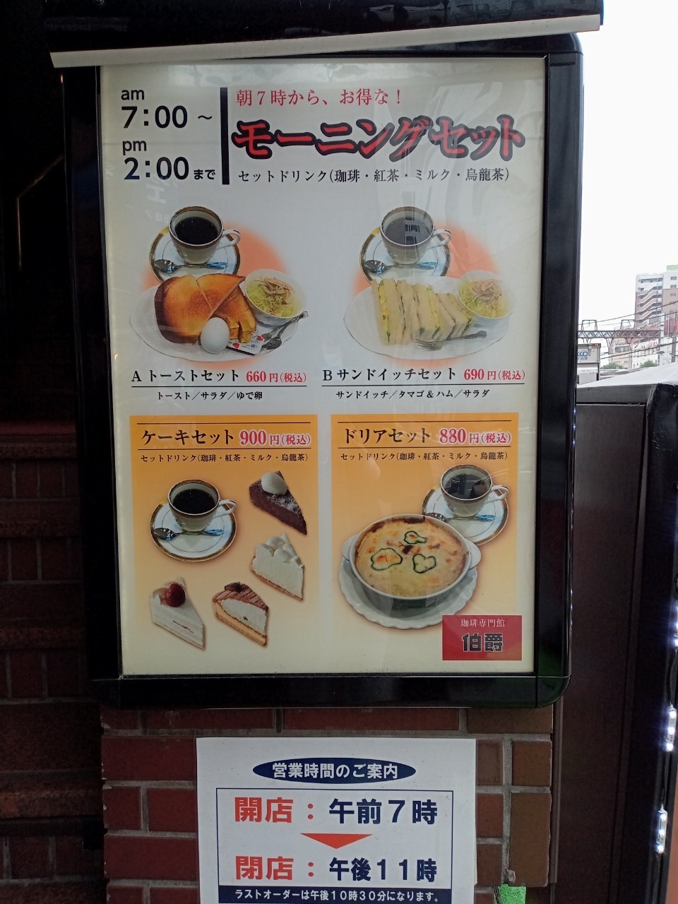 おすすめは朝7時から昼14時まで頼めるモーニングセットは660円からでかなりお得です。