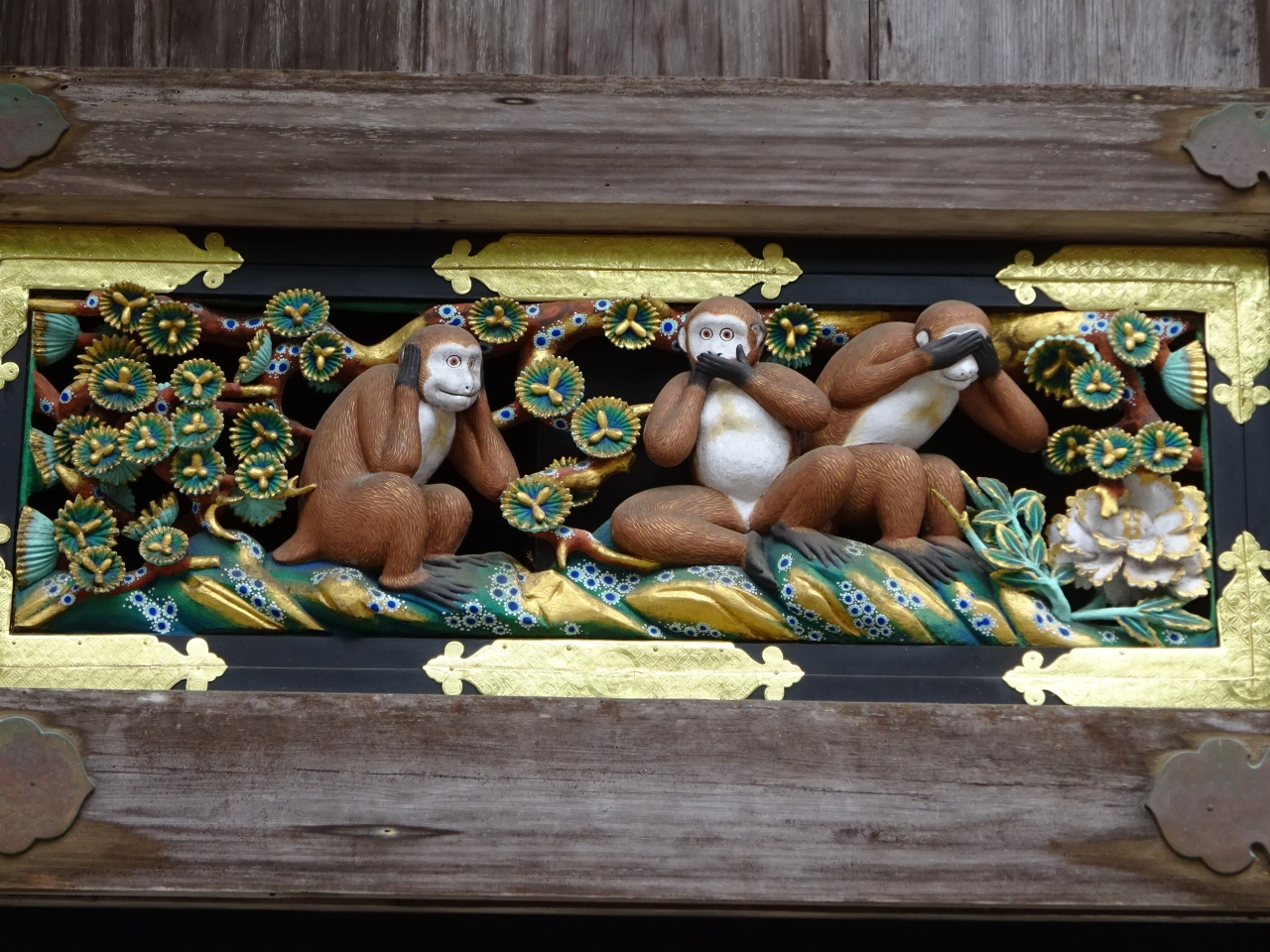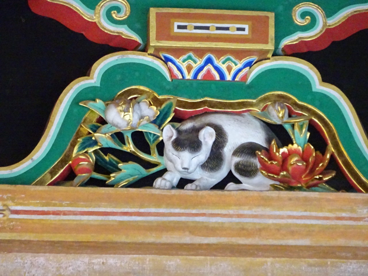 三猿や眠り猫もレプリカっぽいのです、子供の頃も思ったのですが、意外と小さく地味に収まっています(笑)、でも極採色の彩色は繊細で美しく、見ていて癒されます。
