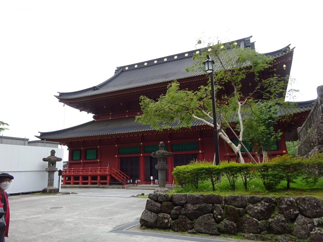 広い境内に大きな伽藍、塗り終えたばかりの漆は、まだまだ絵の具のように見えます。