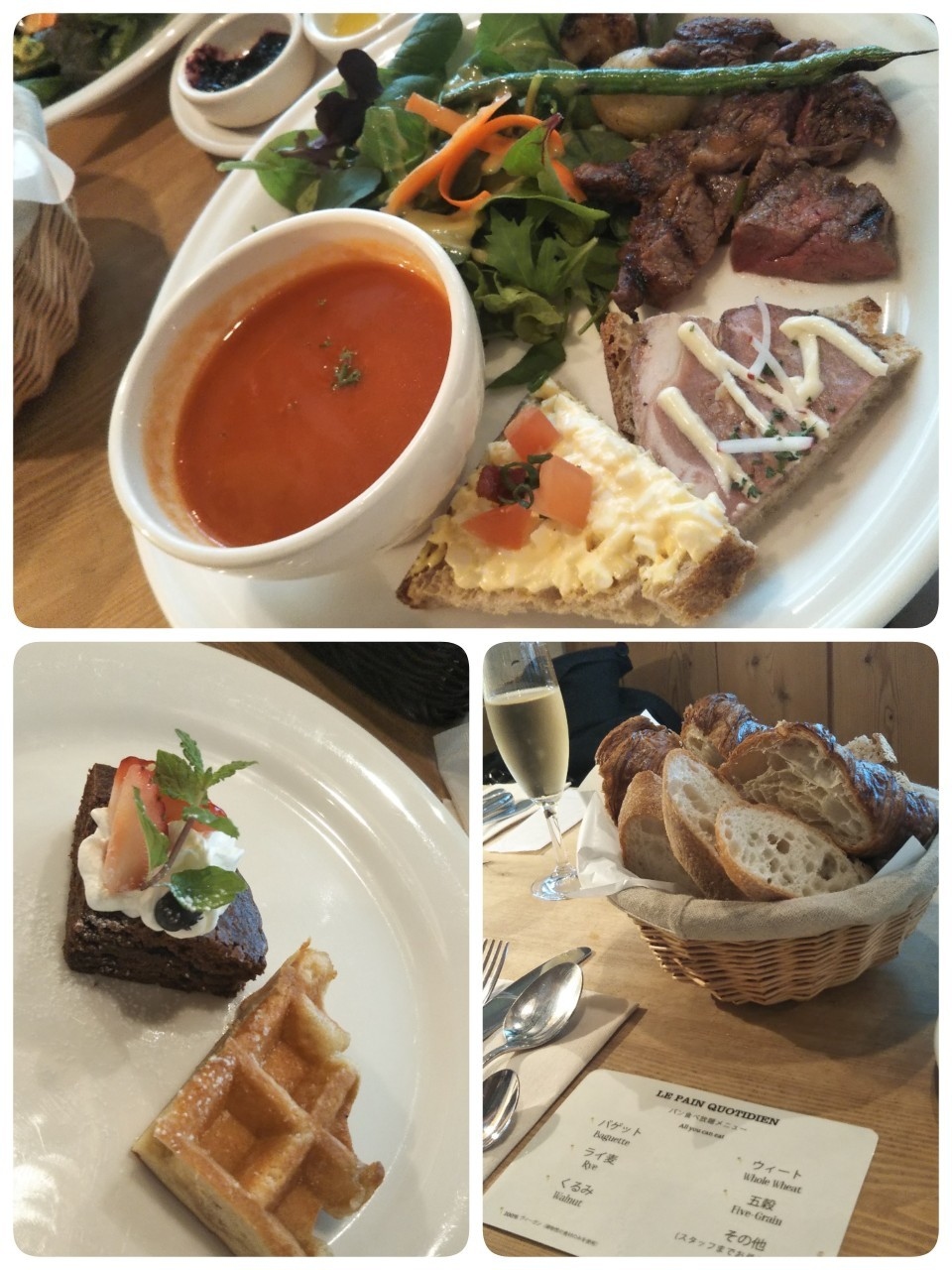 パン食べ放題で、カフェオレボウルのような器に入ったスープはヨーロッパで良く食されるトマトベースですが、日本向きに滑らかになっていました。