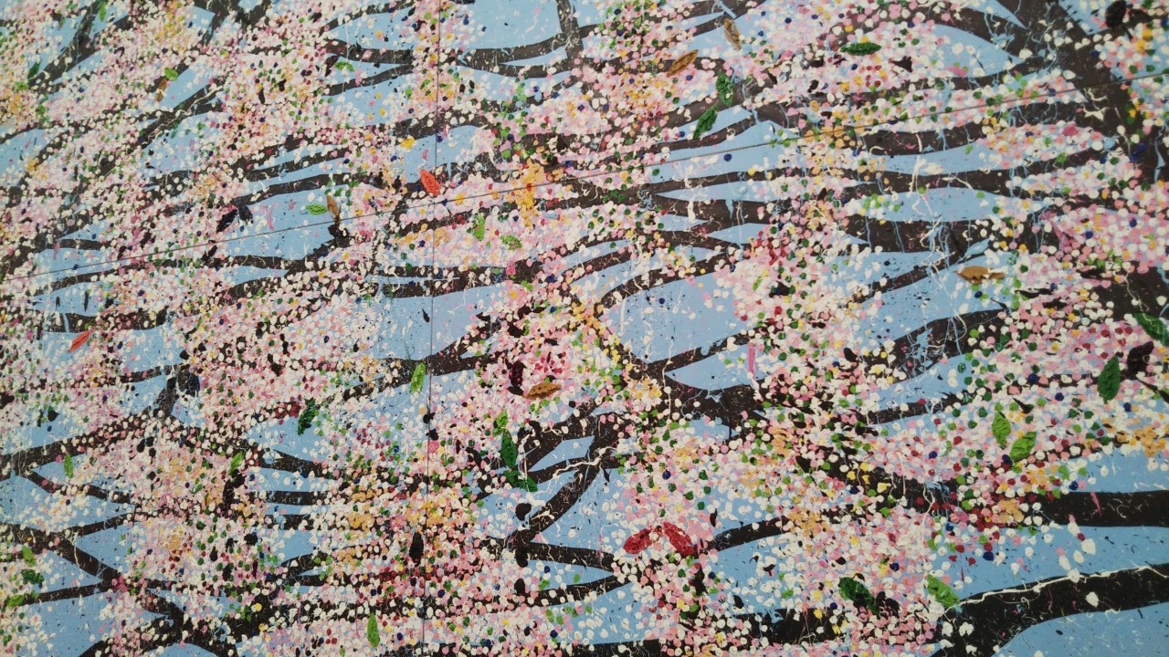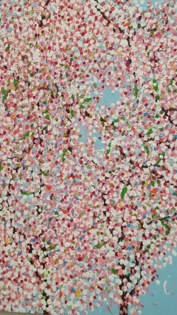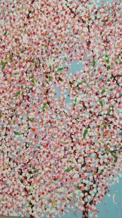 イギリス人が描く点描の桜、外で満開の桜にも似て、1年中花見気分になれそうです。