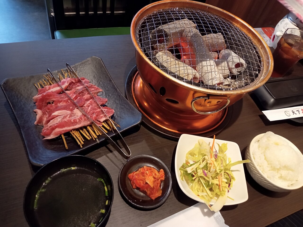 カルビとハラミが食べられる定食にしましたが七輪で焼くとお肉がみるみる縮んで小さくなってしまいました。