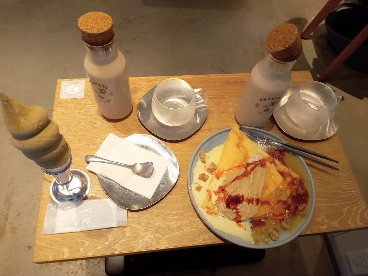 私は紅茶とソフトクリームのセット、友人は紅茶とクレープのセットにしてました。
