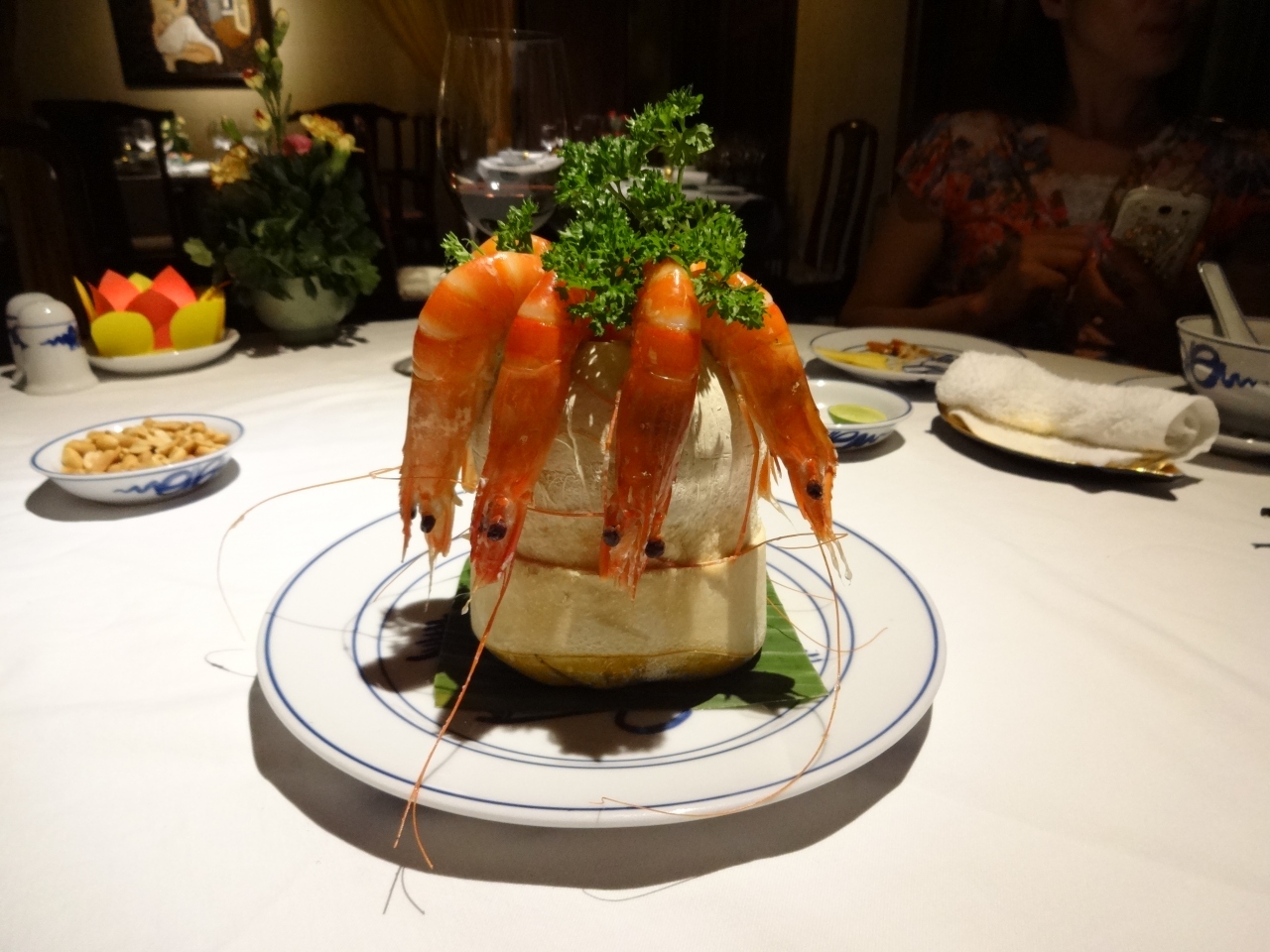 ホーチミン旅行、最終日にツアーで知り合った方に誘っていただき、フリータイムのディナーで利用しました。とても洗練された雰囲気で、家具や調度品も高級感がありました。各国VIPの方々が利用されるだけあって、味も文句なく美味しかったです。メニューは英語のみ、欧米人の利用が多いのか、冷房は少し効き過ぎみたい(^_^;)