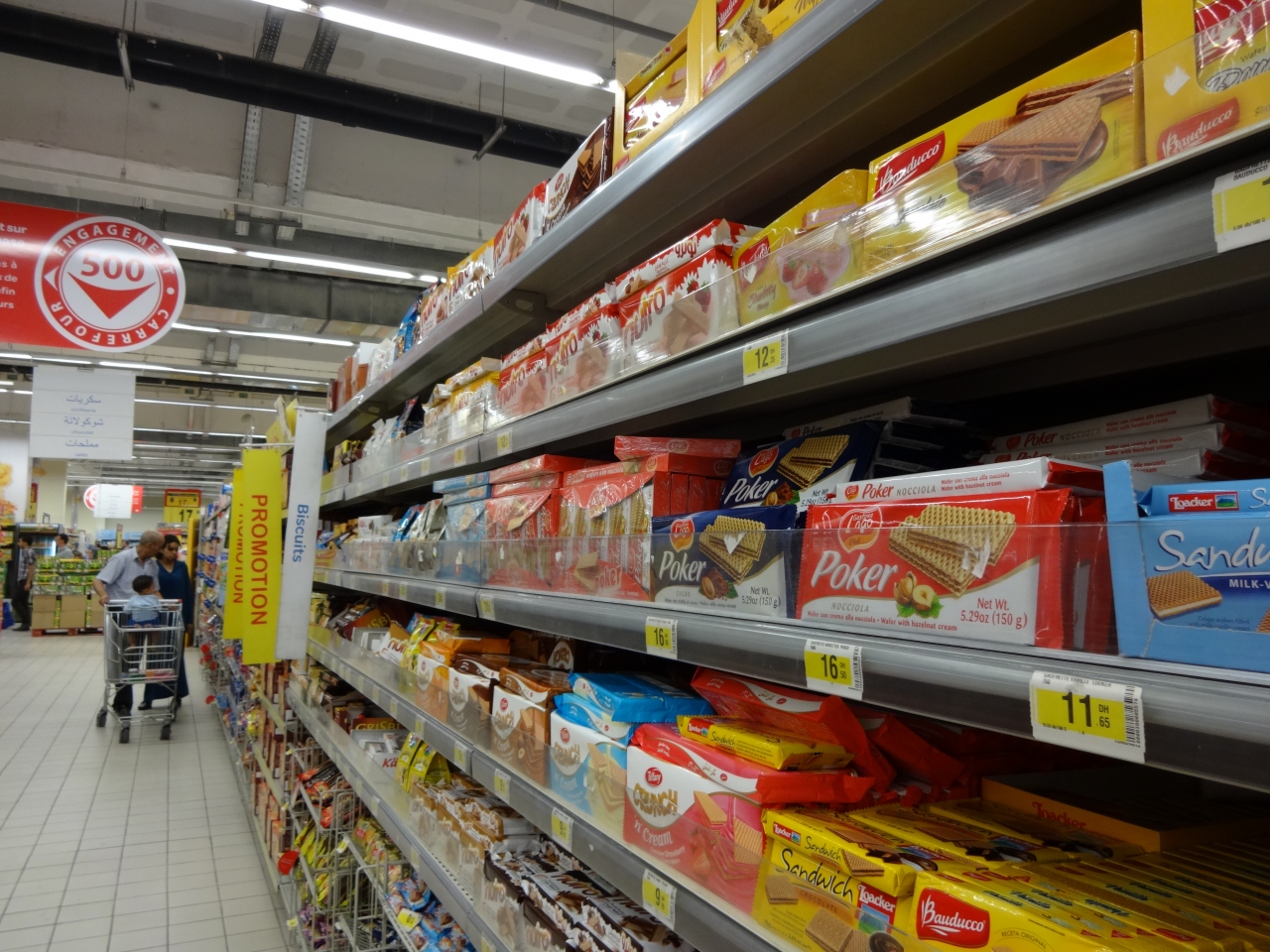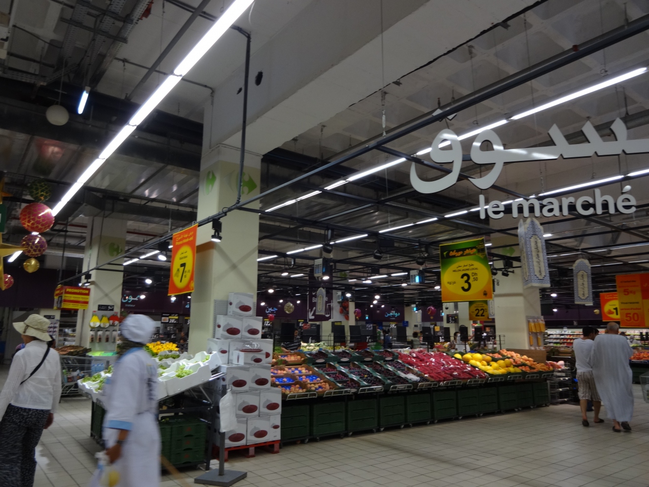 ショッピングセンターの中にある大型スーパーで、すぐそばにマクドナルドのドライブスルーも有りました。生鮮食品や日用雑貨まで幅広く揃っていて、地元の人で賑わっています。相場を知るにはいいと思います。海外のスーパーらしく、何でも量は多めです。お菓子も種類が多く(輸入物も多いのでモロッコ産かどうか確認して)、バラマキ土産に最適です。アルガンオイルもリーズナブルですが、信頼出来るメーカーの物が揃っています。日本に代理店のあるTIYYAの化粧品も種類が多いです。ここのサボテンオイルはアルガンオイル同様にお勧めです。