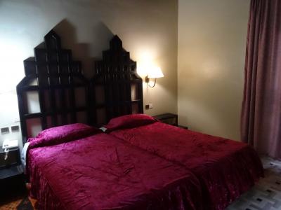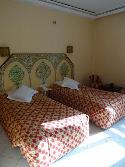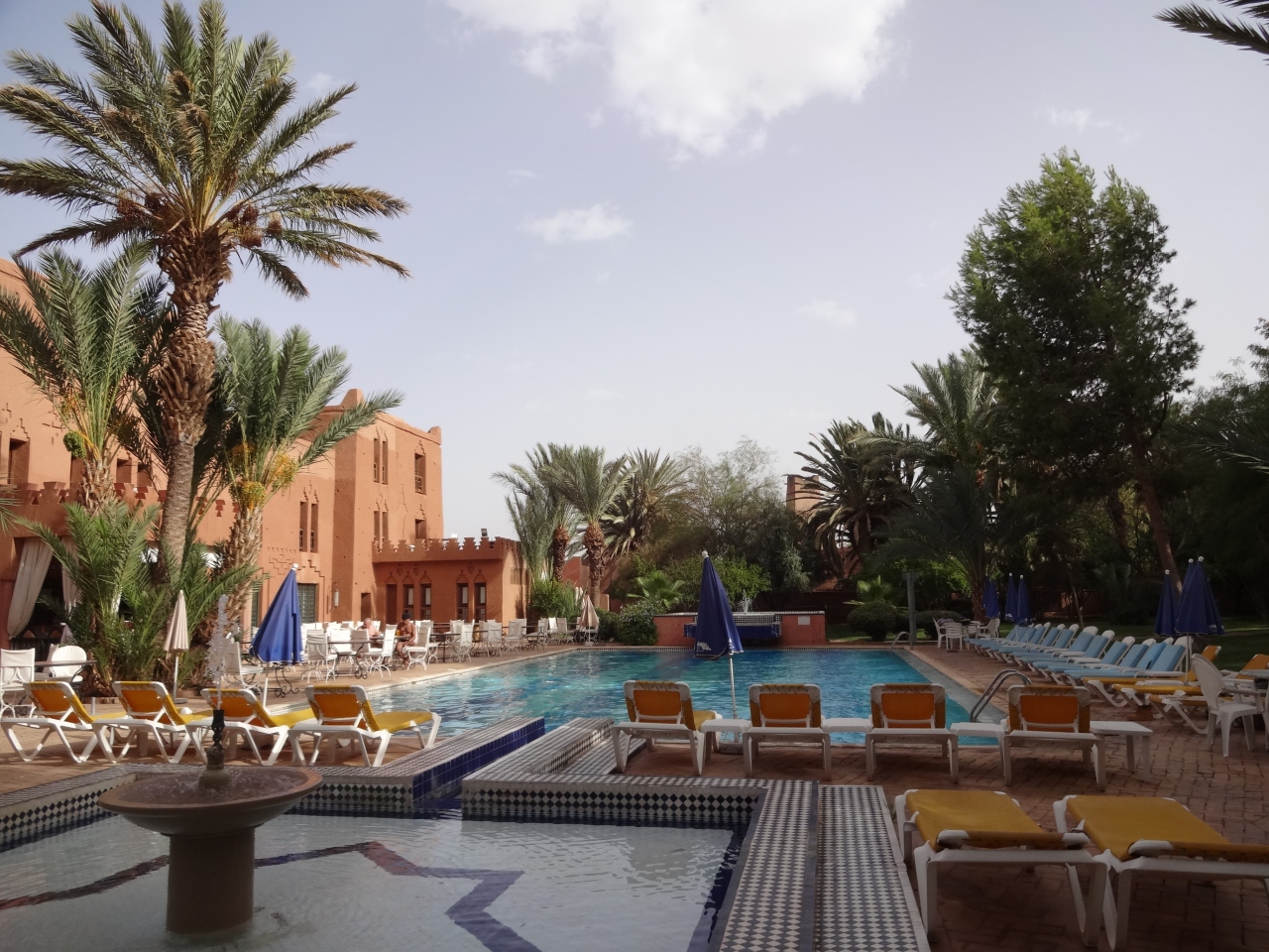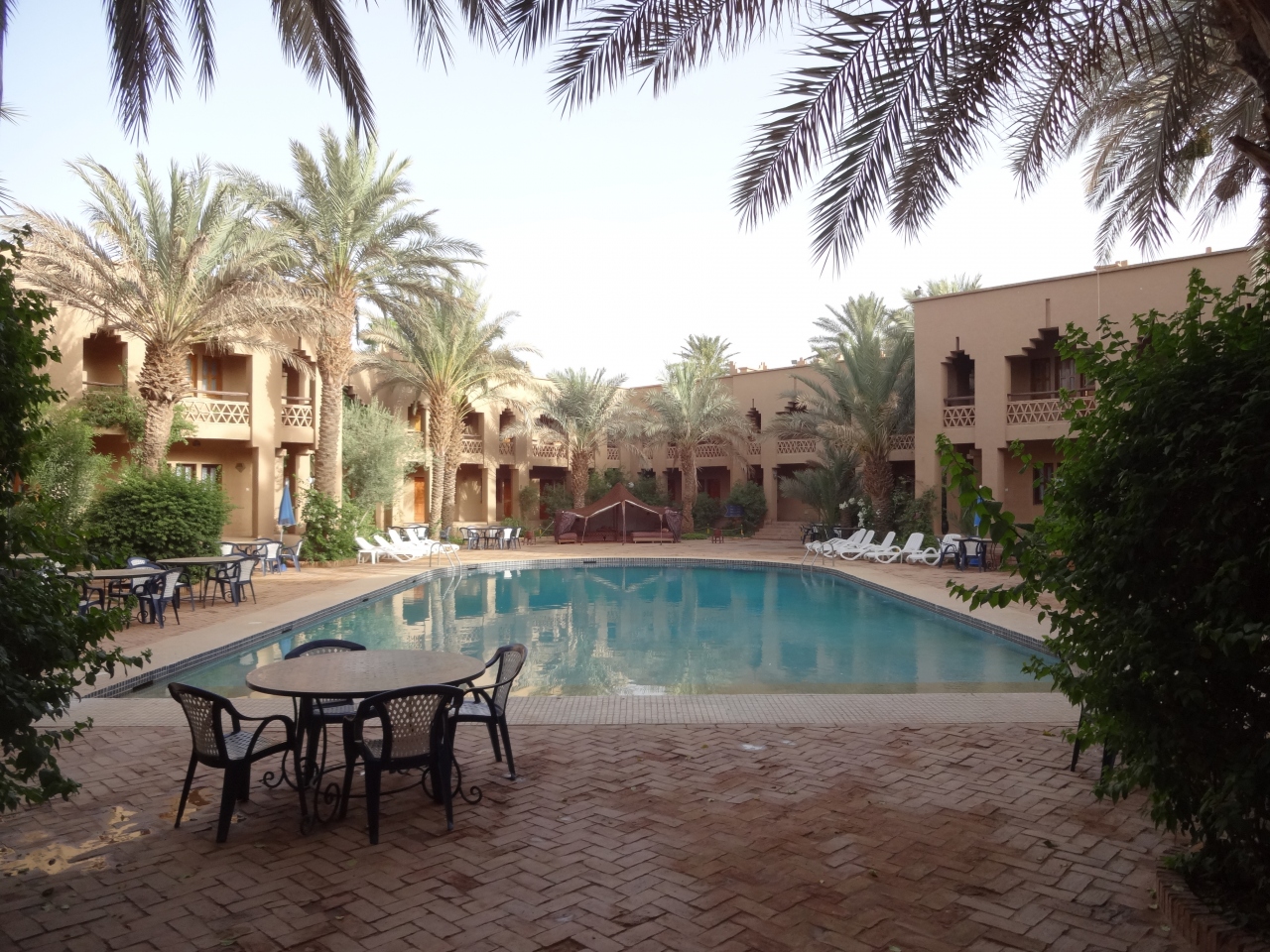 ツアーで利用しました。連日、リアドサラーム系統のホテルでしたが、慣れてきたのか快適に感じました。アメニティや部屋の設備に多少の不満はあるものの、田舎のホテルなら充分です。虫がいるので苦手な人には辛いかもしれません。部屋は薄暗いですが、天井も高く圧迫感はありません。コテージ風でプールサイドで朝食を取れます。生搾りオレンジジュースは絶品です。売店のバラ水やアルガンオイルは、ツアーで連れて行かれる店よりずっと安いのでお勧めです。沢山買って値切れば、更にディスカウントしてくれます。