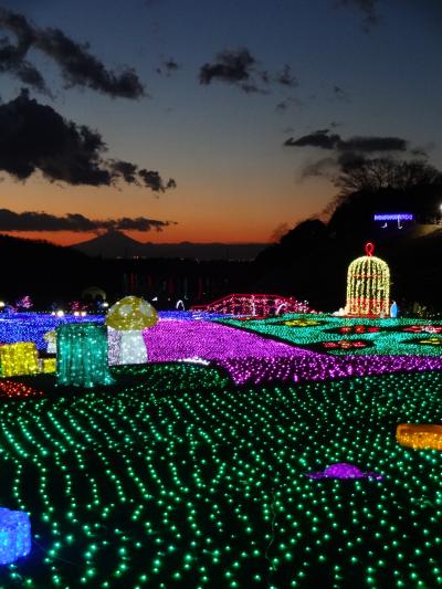 日の高いうちは何もないだだっ広い場所ですが、日が暮れるとその広さ故に、辺り一面を一望出来る、見事なイルミネーションになります。視野がとても広く、冬の澄んだ空気で富士山も見えます。混まない内に、観覧車から眺めるのもお勧めです。写真を撮るのがお好きな方は、迫力ある一枚が撮れるでしょう。日暮れ前から場所を陣取って、三脚を立てている方がとても多くて驚きました。他のイルミネーションにはない光景でした。イルミネーション好きで色々と行きましたが、ちまちまとLED電球の数が、沢山ある場所もありますが、展望的にはここが一番だと思います。ただ、交通の便が悪いので、車かバスをツアーバスを利用するしかありません。