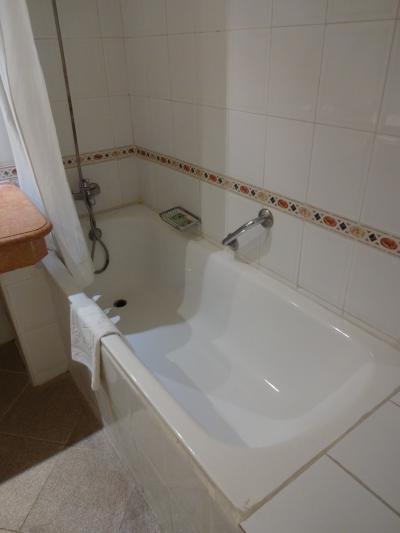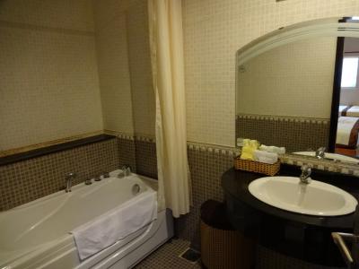 ツアーで利用しました。日本で言う普通のビジネスホテルです。ホテルの部屋は狭いですが清潔でした。バスルームの使い勝手は、日本と比べるとお湯の出は悪いしぬるいけれど、それぞれの国の事情を考えると充分だと思います。近くにモスクがあるのかアザーンの声で深夜に起こされてしまいました。近辺の治安はそう悪くないようです。