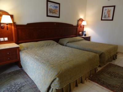 ツアーで利用しました。皆さんも書いてらっしゃいますが、大型スーパー『カルフール』が徒歩圏内にあり、明るいうちなら女性1人で行っても問題ありません。スーパー徒歩圏内でポイントは高いと思います。客室はまあこんなものかなあ・・・という感じ。お湯は出ますし、冷蔵庫もキチンと冷えています。部屋も清潔です。アメニティは石鹸とシャンプーくらいでスリッパはありません。レストランはビュッフェの品数は少ないです。スープも味がないです。2泊のうち、1日のみコース料理が出たときはそれなりに美味しかったです。屋上からアトラス山脈まで見渡せます。低層階の方も一度、登ってみることをお勧めします。