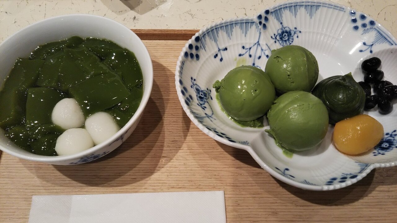 抹茶アイスと生ちゃゼリーのセットはほっこり落ち着く大人の味です、- 旅行時期