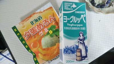 薄荷スプレーだけにしようと思いましたがせっかくきたら色々目移りしてしまってじゃがバターの粉末スープとヨーグルトドリンク、夕張メロンのグミと買い込んでしまいました。