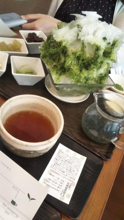 友人は抹茶のかき氷、私は抹茶チーズケーキとお茶のセットにしました。