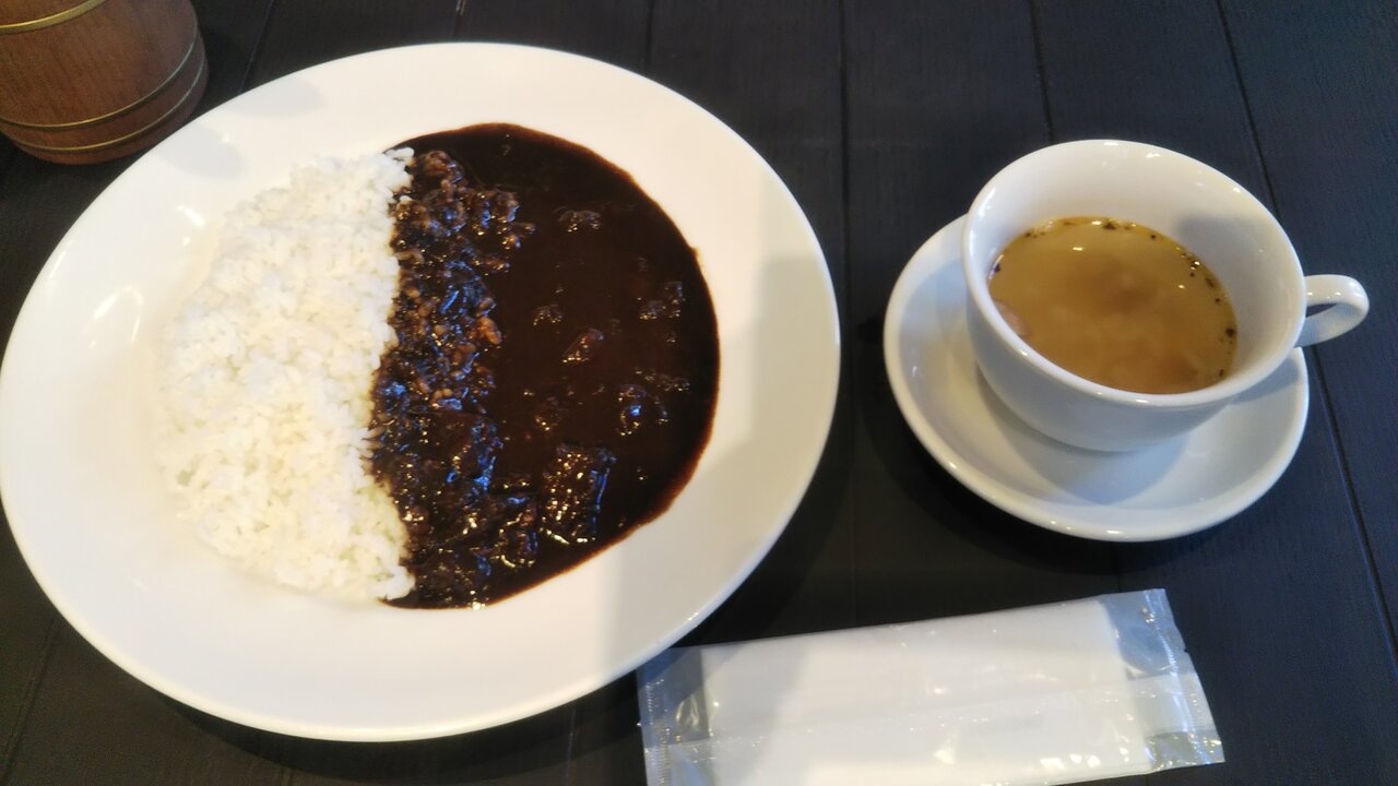 牛すじの黒カレーをチョイスしましたが結構辛目で本格的なお味でした。