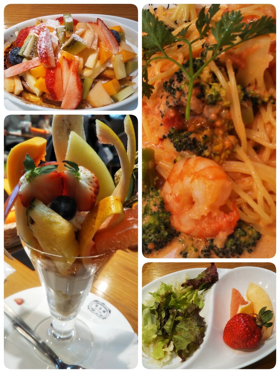 平日の昼時はパスタとフルーツビュッフェ食べ放題2時間制で3800円とお得ですが、段々と食べられなくなり無理に食べると良くないので、単品のパスタとフルーツパフェを注文。