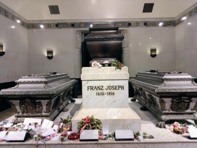 最後はエリザベート、フランツ・ヨーゼフ皇帝、ルドルフと家族3人仲良く並んでいて、参拝客もお供えも一番多いです。