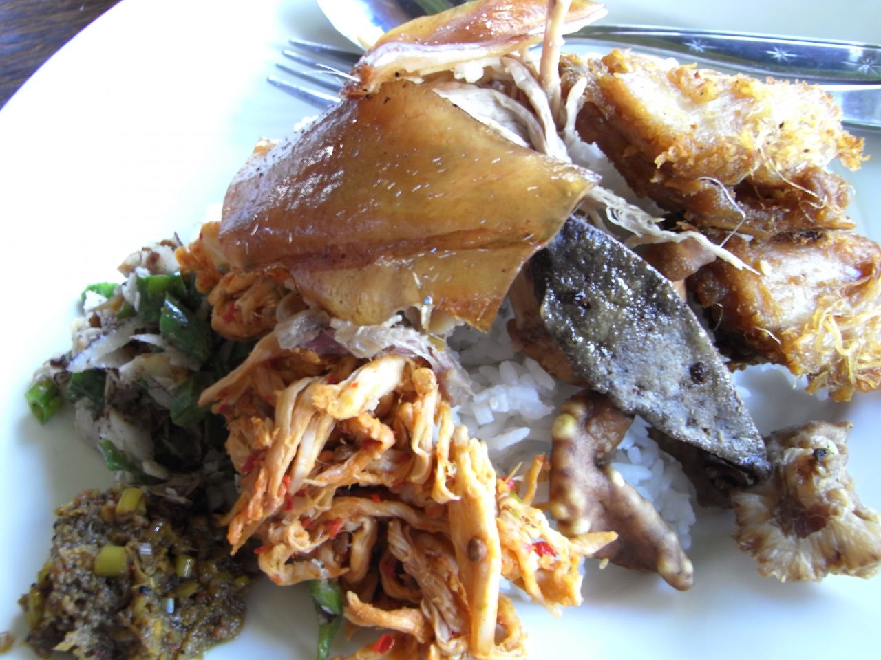 スペアリブは柔らかくて、簡単に骨から実が剥がれます。流石バリの豚、ジューシーで美味い。味付けはフルーティーですが、スパイシーにも出来ます。スパイシーにしてもそれ程辛くはありませんでした。量は一人で食べるとかなりお腹がふくれる量です。
