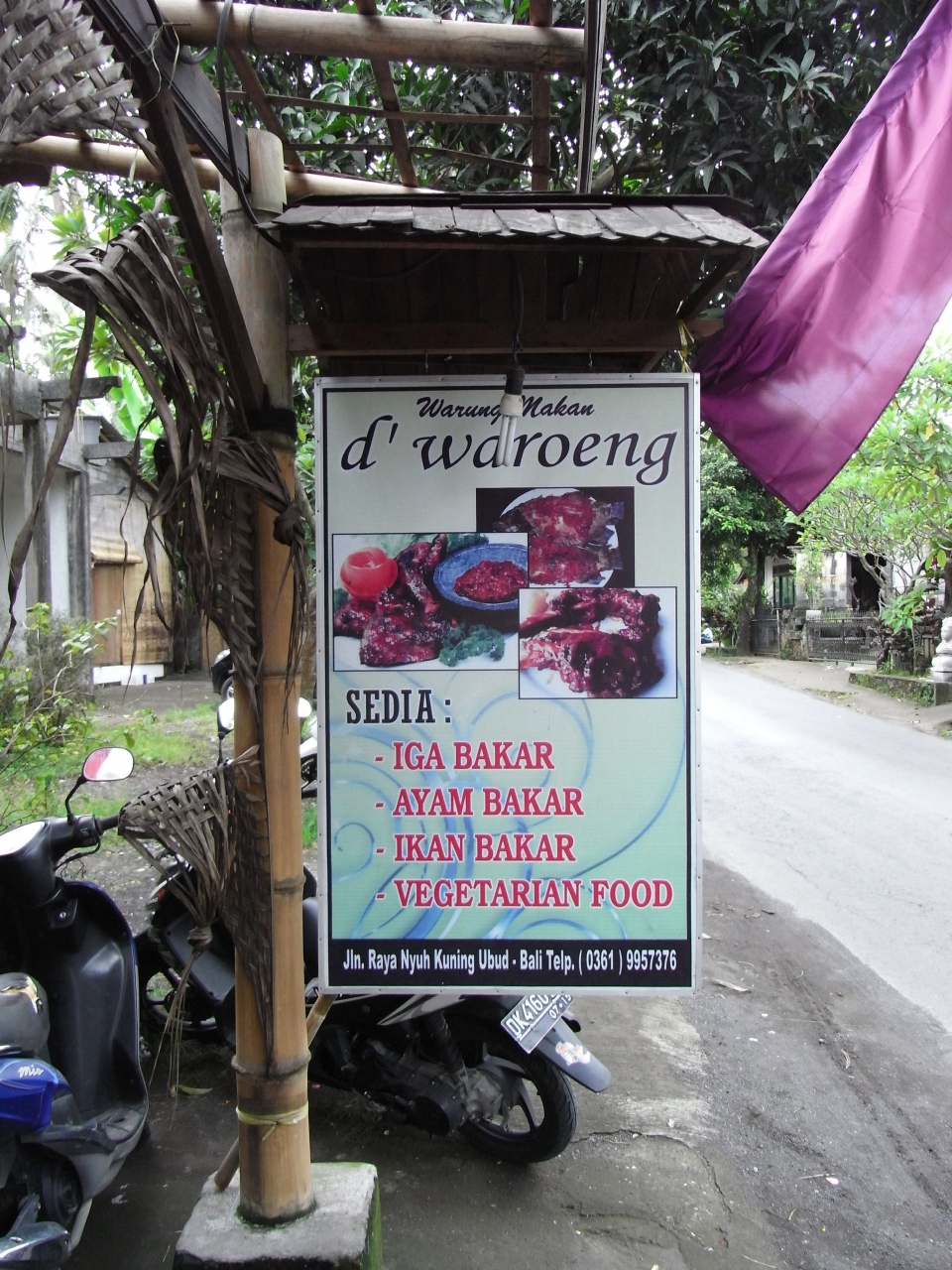 色々なサイトでの噂を聞きつけ、今回初めて≪dワルン≫にチャレンジしてみました。プンゴセカンからサヤン方面に抜ける東西の道沿い、ニュークニンの橋の手前50M程の所にあります。店構えはワルンなので、気を付けていないと通り過ぎてしまいます。