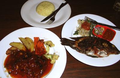 メニューは豊富で、レストラン並みの品ぞろえ。シーフードやチキン料理、BBQもあります。料金は出てくる料理を考えると、かなりリーゾナブル!