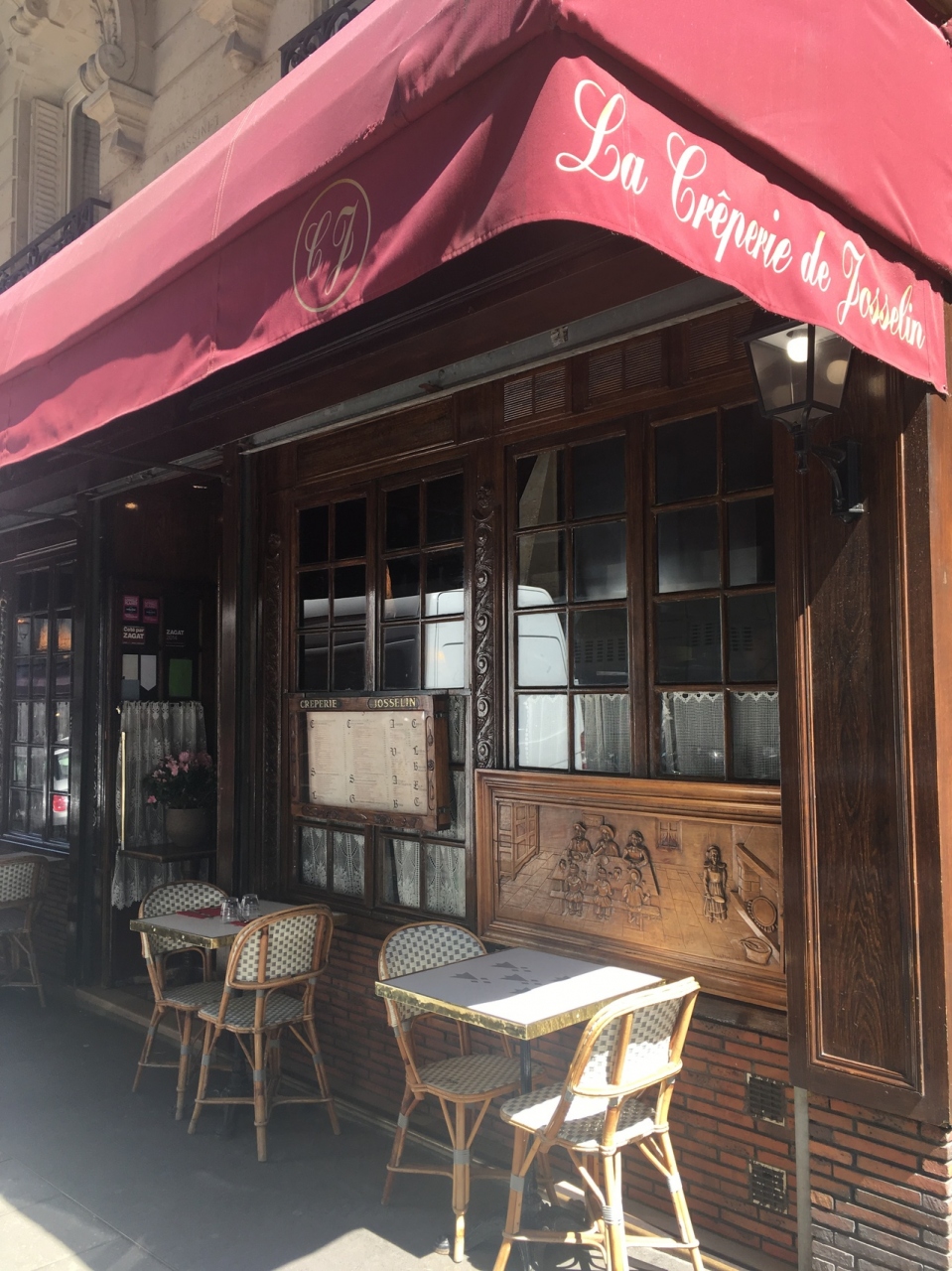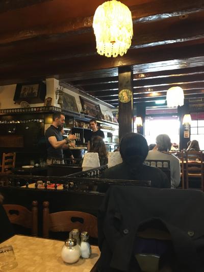 ガレットやクレープのお店が多いモンパルナスの中でも有名店という事で行ってみました。お昼の時間をずらして14時くらい、まだ賑わっていましたが座れました。ガレットはベーコンとオニオン、その後りんごとバニラアイスのクレープを注文。運ばれてきたガレットを見て、日本のガレットは本当におしゃれだと実感しました。オニオン入りの生地にドーンとベーコンを乗せただけのシンプルさ。とは言えくせになる美味しさ。クレープはアイスが中に包まれていて熱々クレープと冷たいアイスの組み合わせがとても美味しかったです。お店のスタッフも気さくでした。