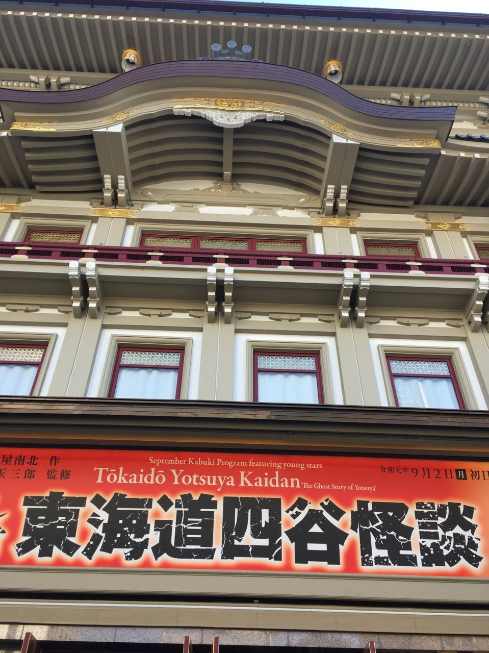 四谷怪談観劇のため初めて南座に行きました。席は3階一番後ろの隅っこ。入るとロビーはなく、すぐ1階の観覧席。エレベーターはありますが、エスカレーターはなく階段で3階へ。3階席の階段も一段一段高くて割と急な作り。席もかなり狭く、人が通れるスペースはゼロなので、奥の人が後から来たら立って通路に出ないといけません。舞台は一番遠い席からでも見えましたが、顔は見えないのでオペラグラス必須です。トイレも少なく休憩時間に間に合わない人多数。観客には優しくない劇場だと思いました。